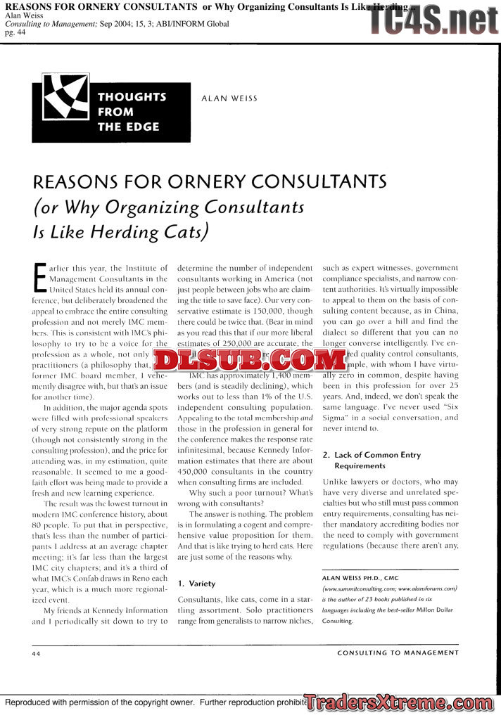 Weiss Reasons For Ornery Consultants Or Why Organizing Consultants Is Like Herding Cats - JPG Image File