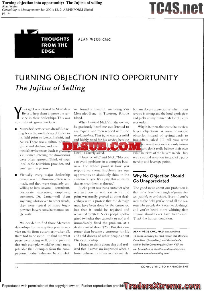 Weiss Turning Objection Into Opportunity The Jujitsu Of Selling - JPG Image File