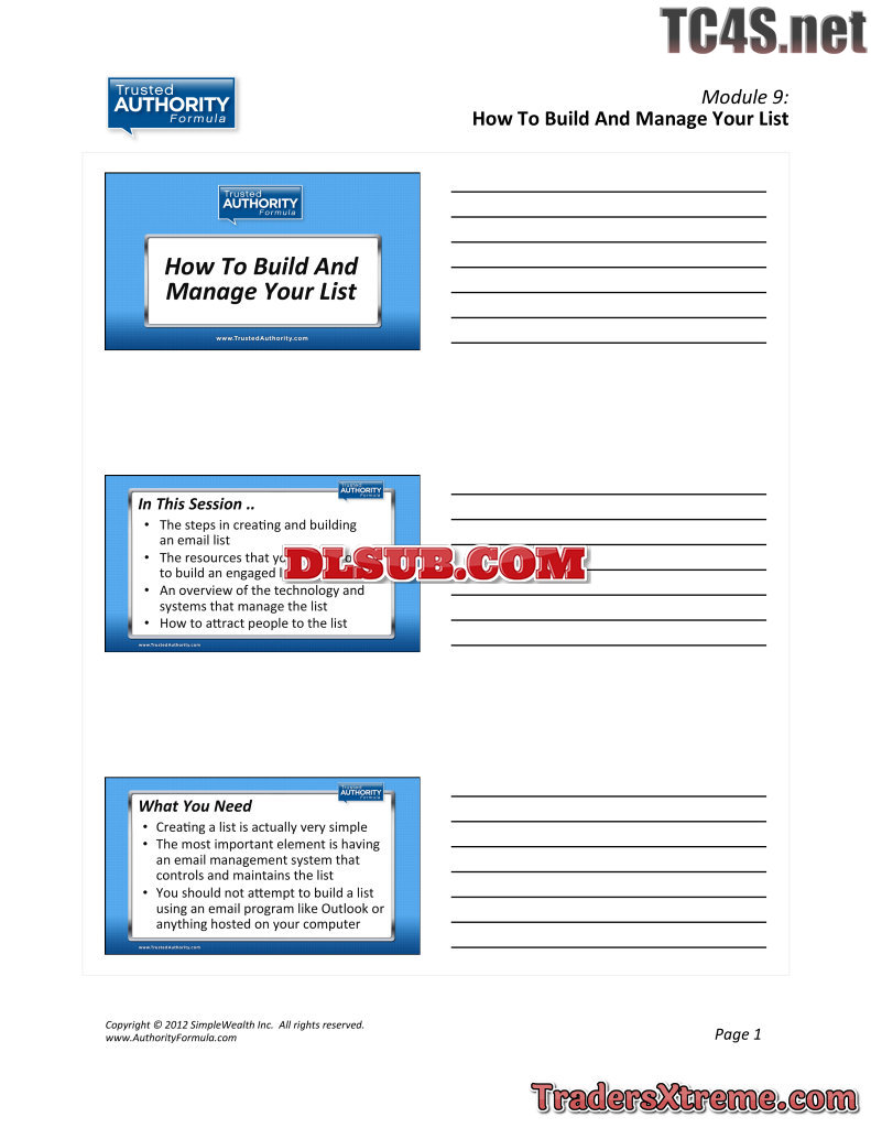 Ttaf 09 04 How To Build And Manage Your List Handout - JPG Image File