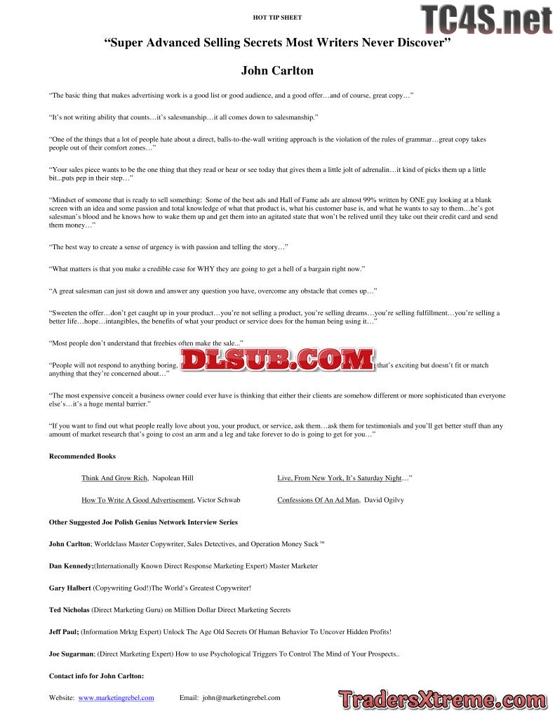 Geniusnetwork Johncarltonhottipsheet Sellingsecrets - JPG Image File