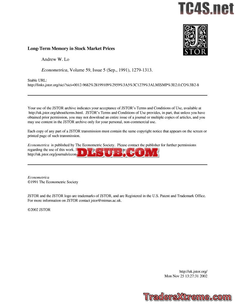Andrew Lo Long Term Memory In The Stock Market Prices