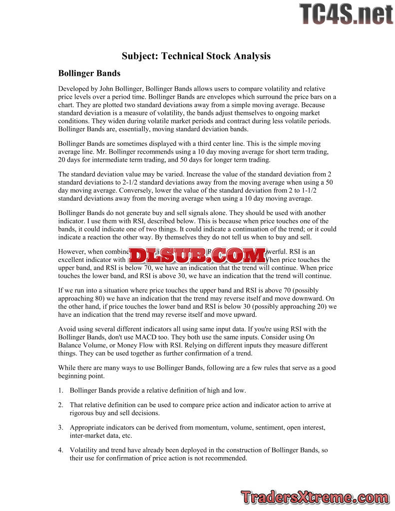 Trading Technical Stock Analysis Bollinger Bands And Rsi - JPG Image File