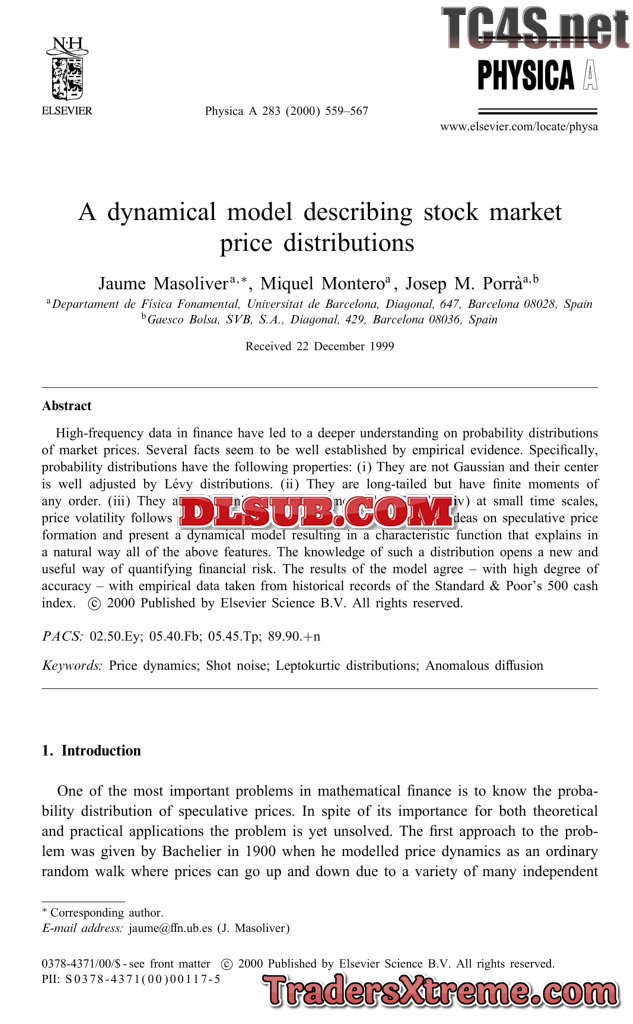 A Dynamical Model Describing Stock Market Price Distributions - JPG Image File