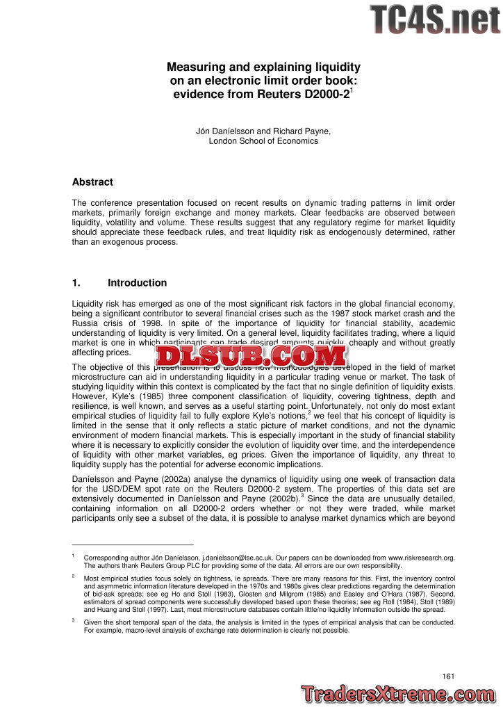 Dan%edelsson And Payne Measuring And Explaining Liquidity On An Electronic Limit Order Book Evidence From Reuters D2000 21 - JPG Image File
