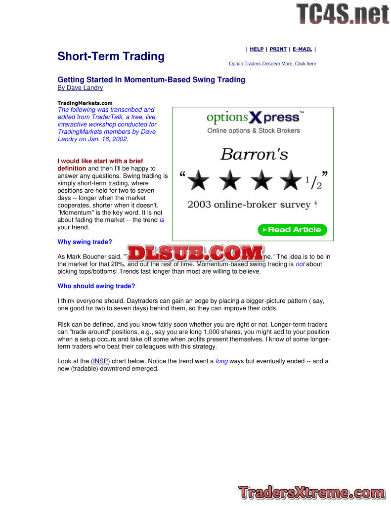 Dave Landry Getting Started In Momentum Based Swing Trading - JPG Image File