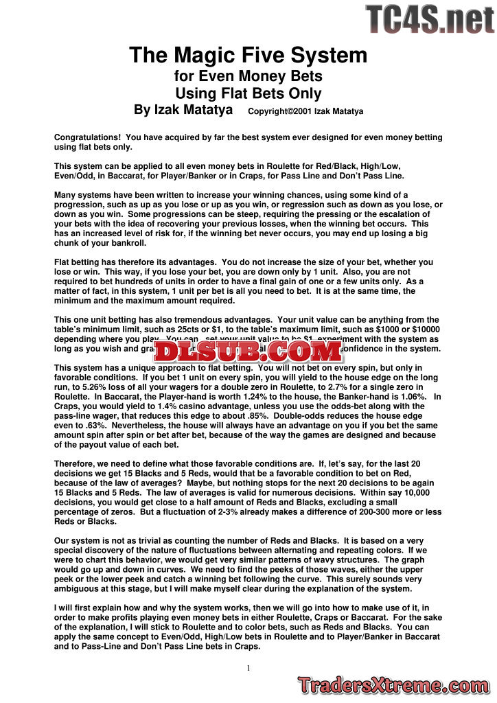 Magic Five System By Izak{for All Even Money Bets} - JPG Image File