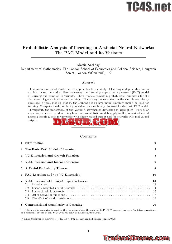 Probabilistic Analysis Of Learning In Artificial Neural Networks Anthony - JPG Image File