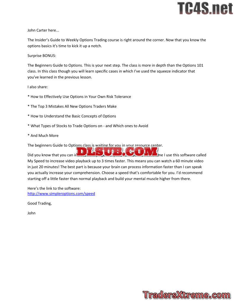 John Carter Simpleroptions Insiders Guide To Trading Weekly Options Strategies Class Usd 749